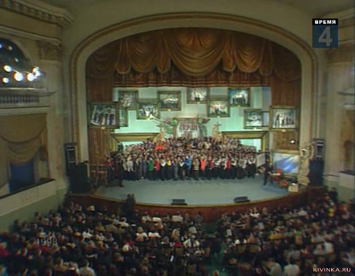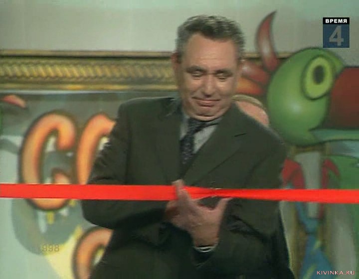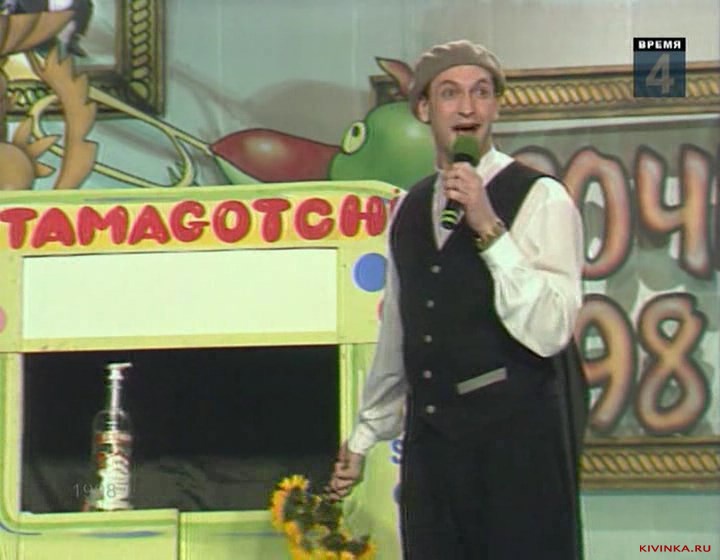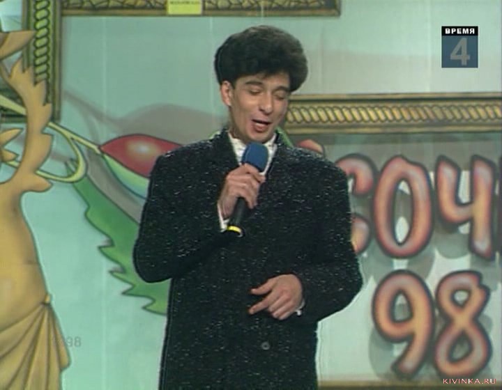 В конце фестиваля ведущий А.В.Масляков нарисовал синими красками картину на холсте, на которой написал КВН-98.