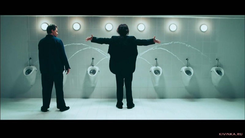 В российской секретной лаборатории Люди в черном. Один Черных прикалывается над другом со стирателем памяти.