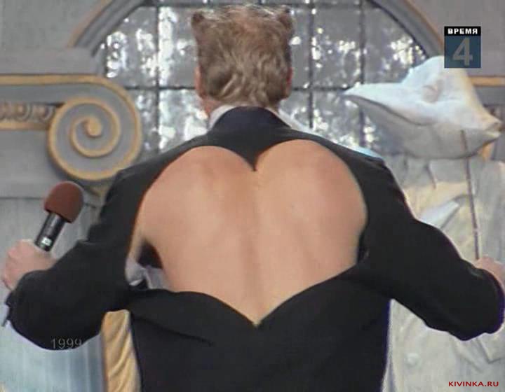 Выход пьяного дирижера, у которого на спине вырезано сердечко на пиджаке.