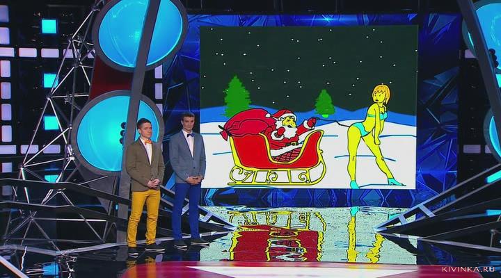 Дед Мороз угарает смехом Слепакова и пьет прутиком голую Снегурочку.