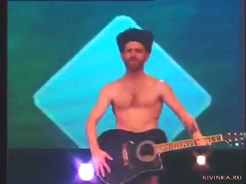 Голый парень прикрывается гитарой.