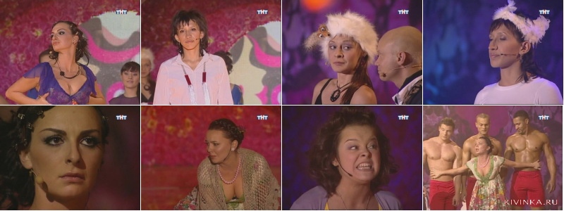 Участницы шоу:100 одежек и все с черкозона - Екатерина Баранова Висят груши когда в душе - секс-символ Екатерина Варнава Сидит девица в темнице за косяк на улице - Мария Кравченко Два конца, два кольца, а живет за третьим - простая русская баба Татьяна Морозова Зимой и летом в одном и тоже - поэтесса мадам Полина Без окон, без дверей, без инстинкта самосохранения - отчаянная Наталья Медведева Кто её раздевает, тот слёзы проливает - Елена Хульевна санта-мария герра Ни лает, ни кусает, хотя та еще сучка - Наталья Андреевна Новенькая из КВНа - Наденька Ведущий - Дмитрий Хрусталев