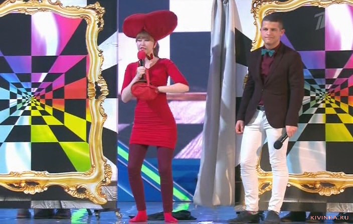 Лилипут Артем и высокая дылда Тамара показали номер заставки Санта-Барбара, выходит из ее ног.