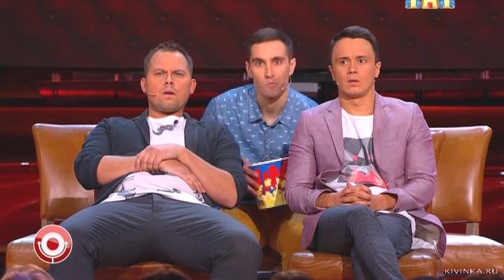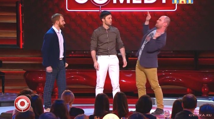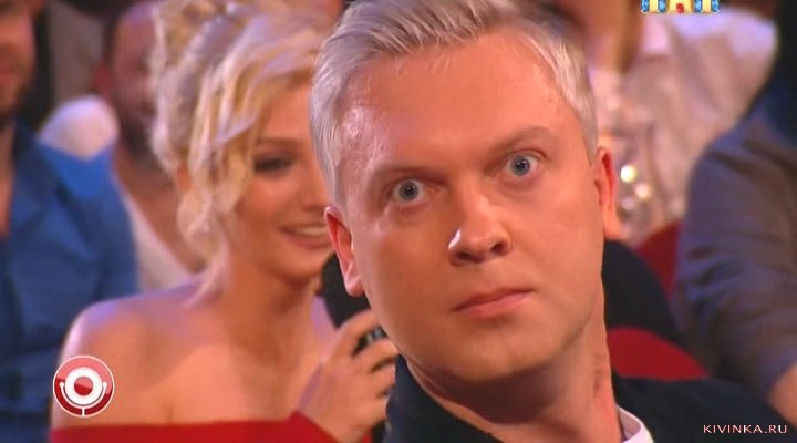 Василий Ровенский и С.Светлаков показывающий лицо в камеру и закрывающий Полину у которой всё потекло;