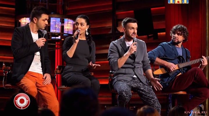 Зураб Матуа, Андрей Аверин, Дмитрий Сорокин и Марина Кравец в музыкальной минутке КК - кто какие стили музыки любит, поют вчетрвером разные направления;