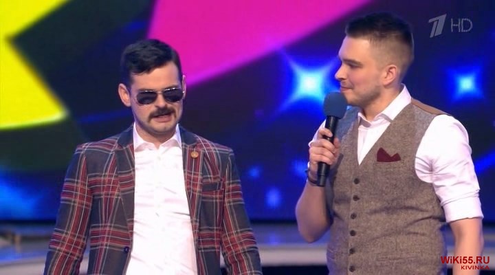Ведущий обычно в пиджаке с кучей разных значков на груди!