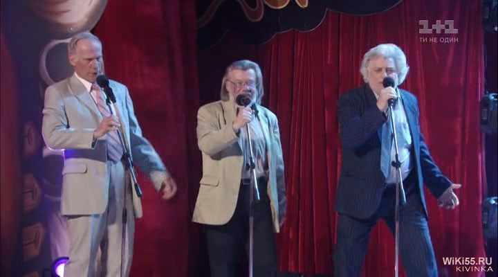Дедушки поют про мокрую бабушку, которая танцует.