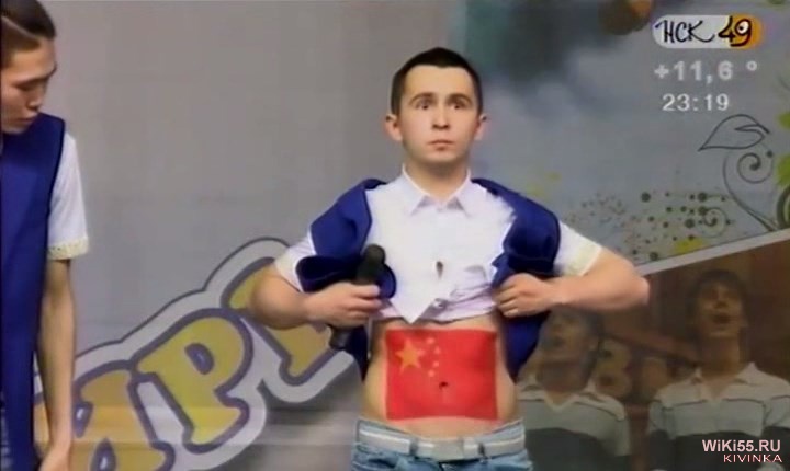 Встреча Путина и китайского лидера. У парня на животе китайский флаг развивается.