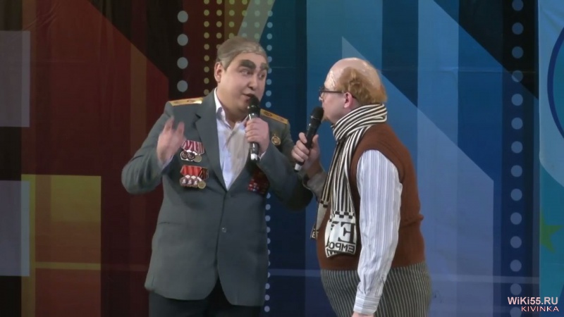 Команда КВН "Театр фарса и абсурда Альметьевска".Пародия на Брежнева дарующего медаль и целующего парня.