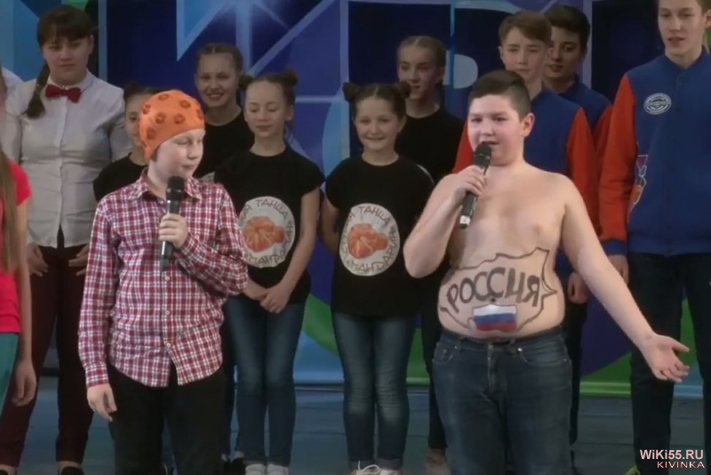Команда КВН ???У толстого мальчика на животе карта России и флаг и он дергает жиром - тверк животом. Я ем и страна увеличивается!