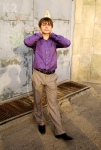 Всегда с нарисованными усами играет. Его всё время называют усатым мальчиком с лицом старика.